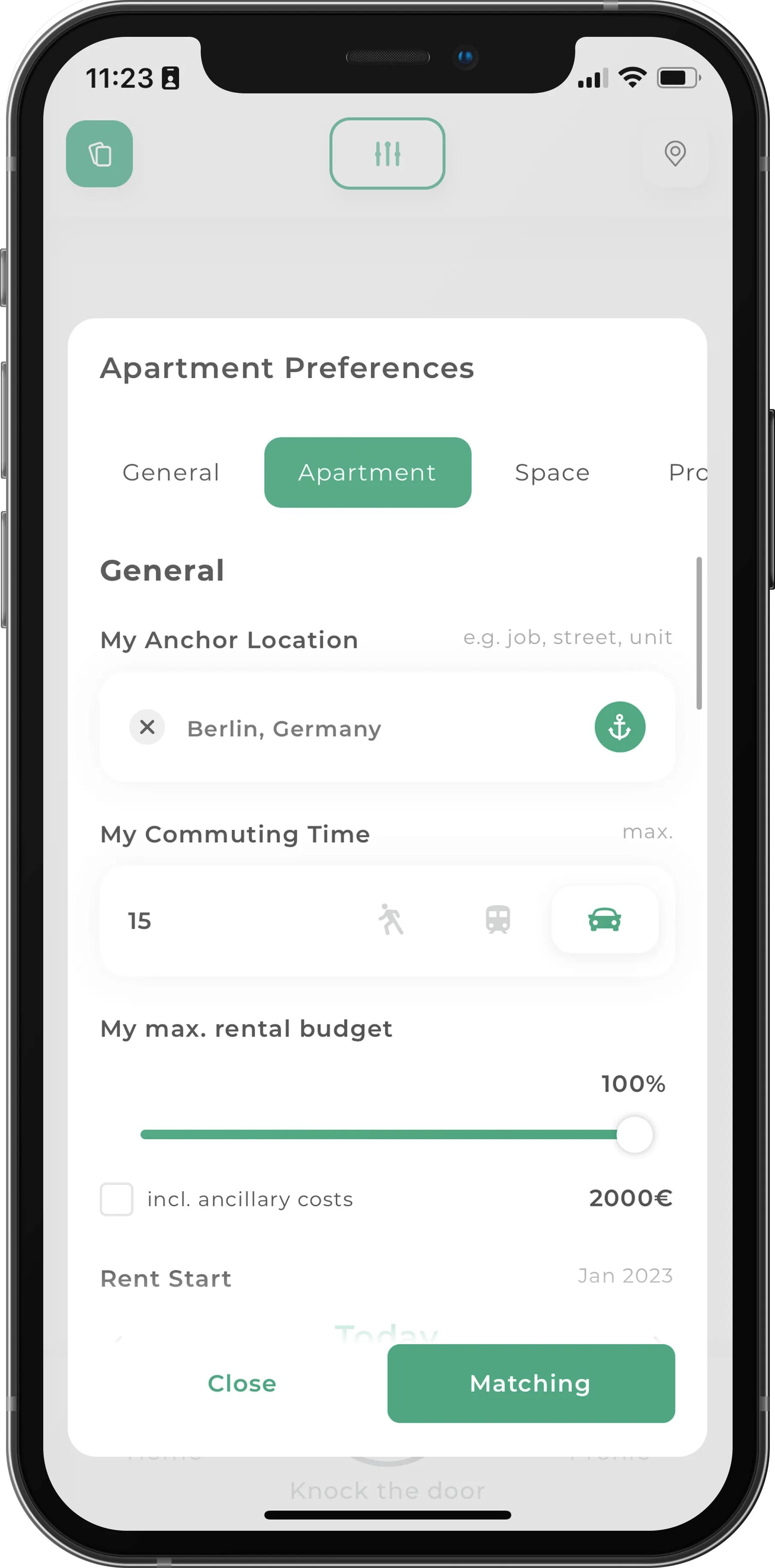Furthermore, we engineered a feature that showcases apartments on the map relative to a prospect's chosen 'starting point' and desired distance, enhancing the search process with personalized location-based results.